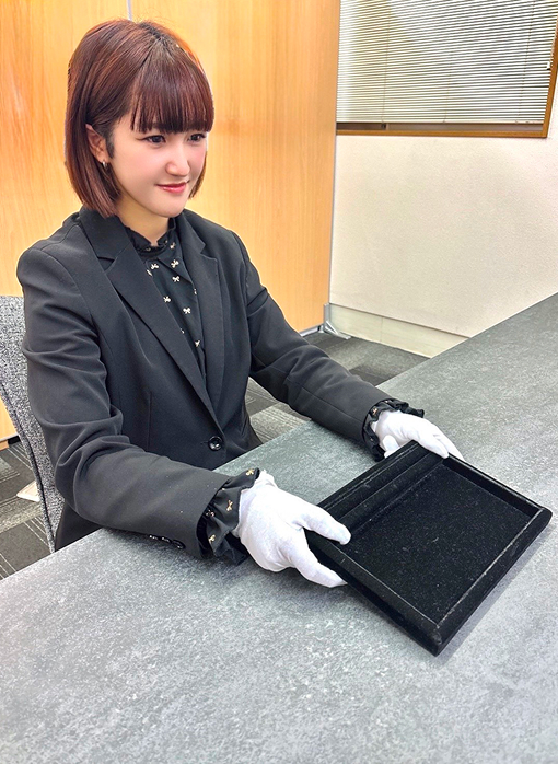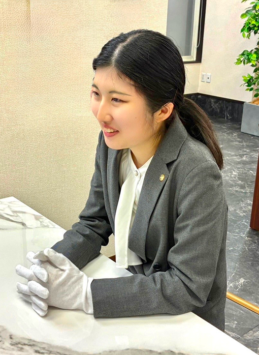 人生、経験がどこで役に立つか分からないものです。どんなことでも挑戦あるのみ、とほとんど勢いで飛び込みました。 仕事ではブランドバッグやジュエリーにたくさん触れられて、世の中にはこんなものもあるんだ!と新しい発見もできて、知見が広がる楽しいお仕事です! 未経験でも、ブランドやジュエリーを何も知らなくても、優しい先輩方が一から丁寧に教えてくださいますのでご安心ください!